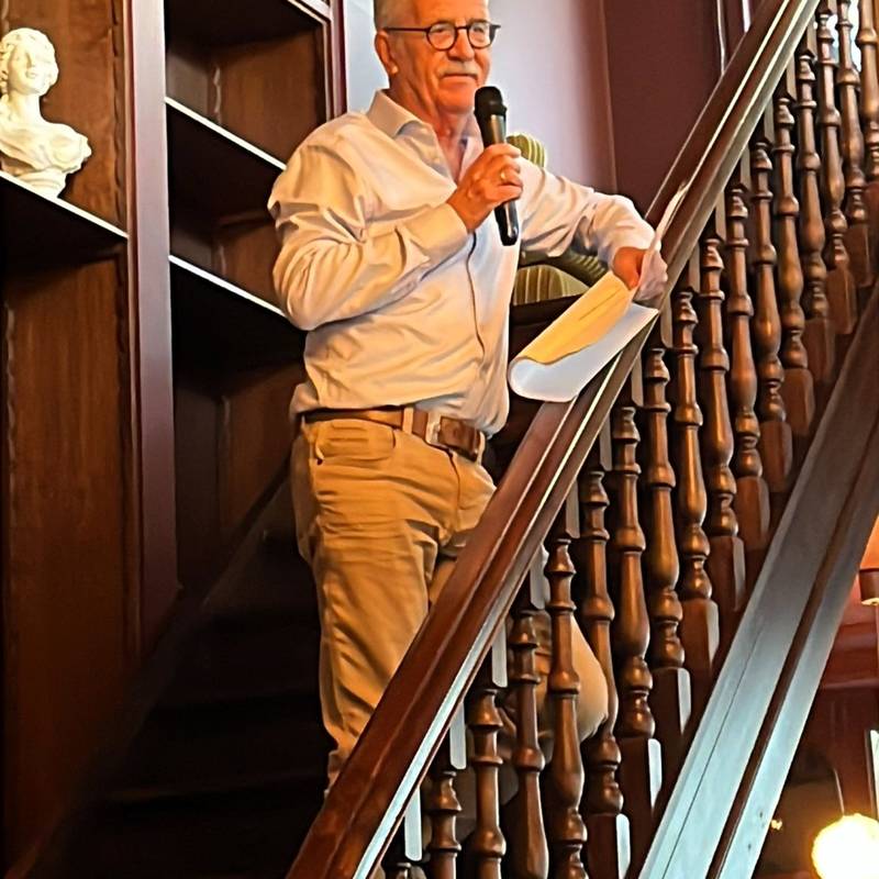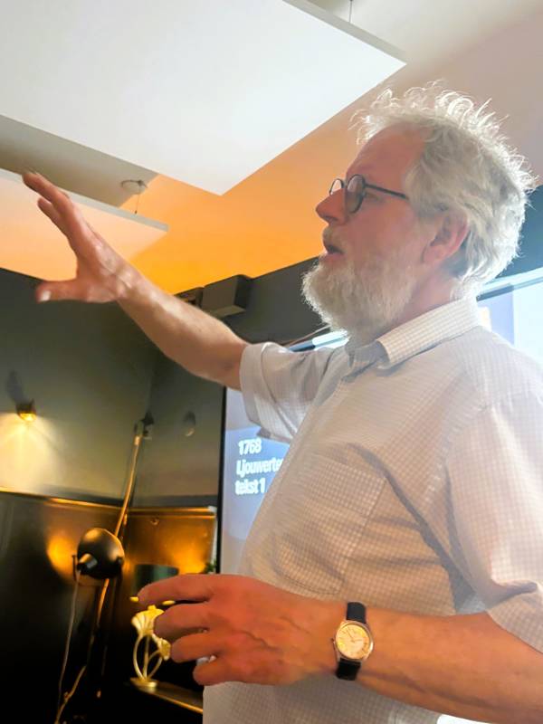 As gast was fanavend oud-Sneker Tjitte de Vries, anwesech dy’t over syn (family-) boek ‘En toch willen we liever hier blijven - over de gebroeders Landau en verders (Palmslag, 2022)’ fertelde.