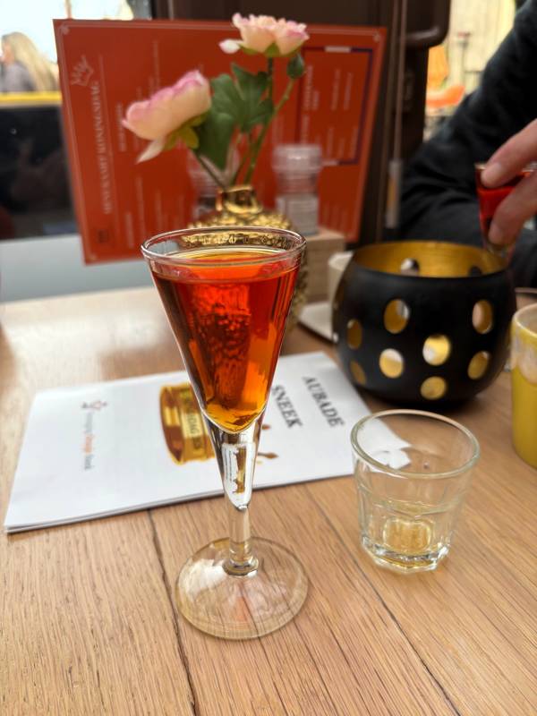 Dêrna bij de Weduwe Joustra weest en ok dêr wear as altyd un warm welkom. Uteraard wurdde un fles Joustra Beerenburg metnommen naar ut súden fan ut laan.