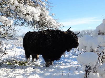 SNEEK- Soms zijn de omstandigheden echt perfect. Dat gevoel wist Ype van der Werf prachtig te vangen in het Rasterhoffpark. In een sprookjesachtig winters decor stond daar een imposante Schotse hooglander, een stier, bijna geduldig model voor de camera.