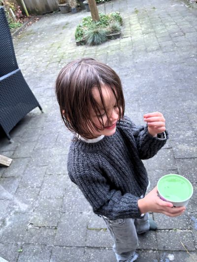 gisteravend toen alles nòch dúster was -selfs de maan had um ferstopt- deden we tegare un eksperiment hij op sokjes in ’e deuropening