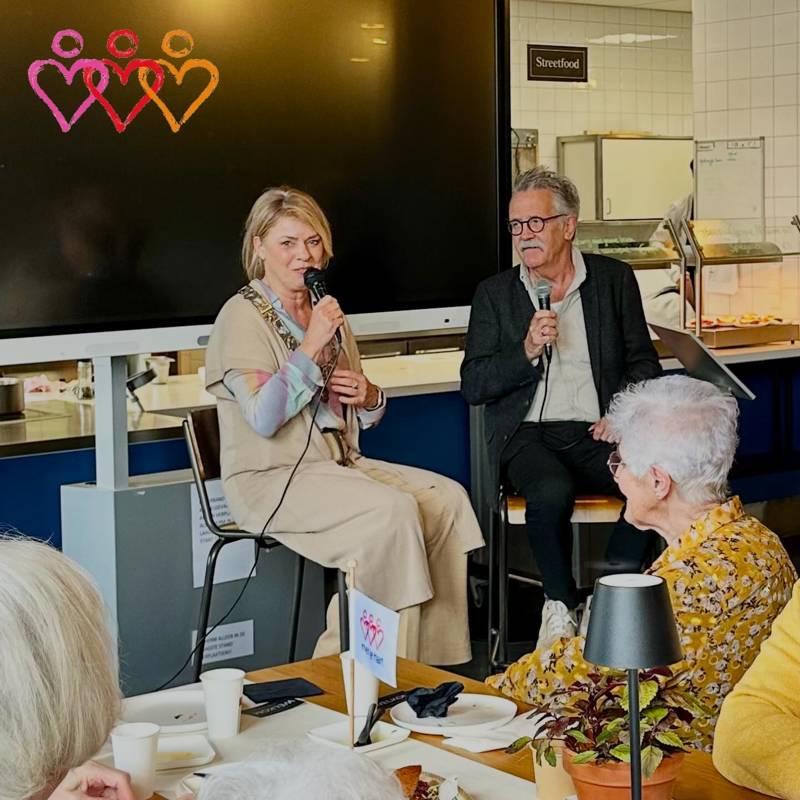 Het gesprek met de burgemeester voelde direct vertrouwd. Geen formele setting, maar een open en plezierige uitwisseling over ouder worden, eenzaamheid en de vraag hoe we daar als samenleving mee omgaan. De burgemeester sprak met betrokkenheid en overtuiging. Haar boodschap was helder: de gemeenschap, dat zijn wij zelf.