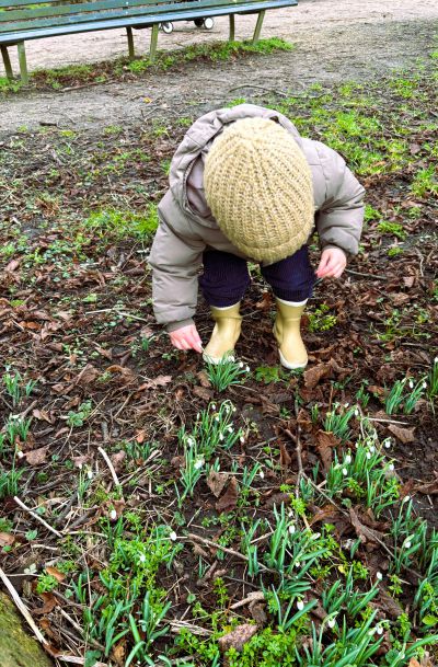 Un hearlek moment fanmňrren in ut Amsterdamse Bos: Sneeuwklokjes in bloei.