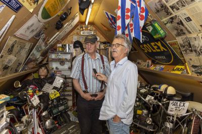 “Ja, dat is al wer sa’n 35 jier lyn dat wij it earste WK Solex Racen organisearren. Us freoneploech ‘De Vlecke’ begûn op in gegeven momint mei de organisaazje fan’e ballonfeesten, dat naam sa’n flecht dat se it WK Solex Racen der net mear bij dwaan koene. Doe ha ik mei noch in pear freonen de Solexclub A.O.W. oprjochte: Altijd Onder Weg! We ha wol mear as 300 leden oer hiel Nederlân hân, no binne it der noch sa’n 100 man. It WK ha we net mear, mar we ha noch wol gesellige ritsjes en besykje de Solexen ridende te hâlden.”