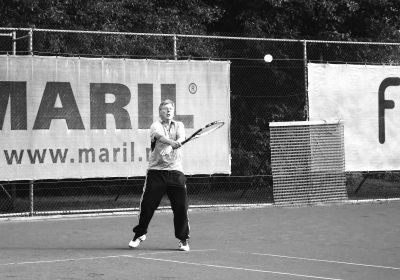 Mar foar mij was ut nyt doadgewoan, earder bútengewoan en wel om’e fòlgende reden: Ik had tòt fanmiddach 3 uur nòch noait fan myn leven un tennisracket in’e haan had. Wel us un moai fers over tennissende dames an’e Korte Vreugde skreven. Dat was myn bining met tennis.