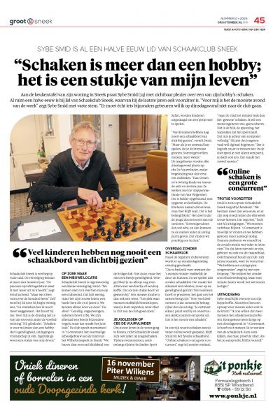 Op myn beurt fyn ik ut dan wear fijn om disse òrganisasy un poadium te geven deur un interview in GrootSneek. Ut gaat ergens over!