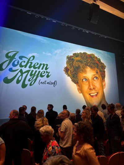 Ik skriëf hier nou gyn resênsy, mar simpel dat ik un fantastise avend had hew, sonder ‘gedoe’. Ut foëlde hearlek ontspannen an. Ik hew genoaten fan syn húmòr en relativearende opmerkings. Ut moaiste fan Jochem Myjer fyn ik dat bij hem de hilaritas altyd overwint onder de meast bizarre omstandechheden. Un échte overlever. Ik foël de konneksy nòch altyd. Fijn dat Jochem op syn eigen socials un foto deelt wêrop't te siën is dat oans gesameleke frynd, Ben van der Knaap, nyt fergeten wurdt!